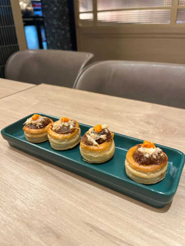 蟹粉田東牛肉焗酥盒是一份創意十足既點心,將蟹粉的鮮美與牛肉既香濃巧妙結合。酥盒外皮金黃酥脆,咬一淡時發出脆響。內餡則是精心調製既蟹粉和巴東牛肉,蟹粉鮮甜和牛肉濃郁相得益彰,口感豐富層次分明。外觀十分精緻。