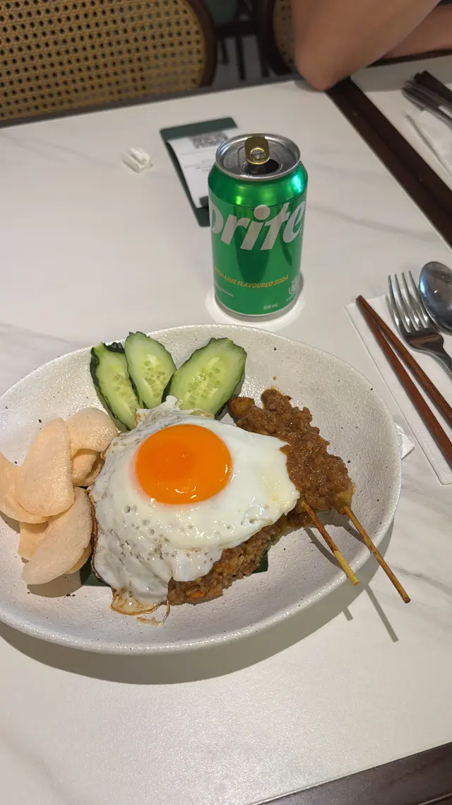 好食新加坡菜 BabyHonG等级32025-08-01505 浏览 关注 今日真係有口福,食到啲正宗嘅「家鄉馬來炒飯」。一上菜,已經畀賣相吸引住。睇落去色彩豐富,好有食慾。煎蛋係靈魂所在,蛋白嫩滑,蛋黃流心,一戳破,金黃嘅蛋液慢慢流出,同埋炒飯一齊食,香滑到唔得。肉串外皮焦香,內裡鮮嫩,馬來風味嘅香料醃得超入味,每一口都滿嘴香。薯片脆卜卜,青瓜片又清新爽口,中和咗炒飯嘅油膩感。炒飯本身都唔簡單,米飯粒粒分明,夾埋其他配料一齊食,口感豐富。再配埋罐Sprite,氣泡刺激,解渴又夾味。食住呢盤家鄉馬來炒飯,滿滿都係家鄉情懷,正呀!以上食记乃用户个人意见 , 并不代表OpenRice之观点。赞好分享好食新加坡菜 JOM https://s.openrice.com/QrLT0vBrT00检举 张贴 评分4味道3环境3服务4卫生4抵食用餐途径堂食