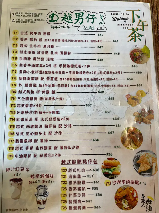 好食街坊越南菜 meipo.ng等级22022-05-0349 浏览 关注 疫情好耐無出旺角啦黎到廣華街,呢間越南仔未食過試一試下午茶好唔好食先呢間小店平日下午茶唔使等位大約7成滿左右 價錢都公道食個豬扒飯都係$41 包熱飲又可以加錢轉凍飲或特飲 抵讚今日試下個越式小食拼盤$56再加個跟餐小食 牛油雞翼$11原來有個沙律跟 佢仲有個酸汁俾你個份量都唔太細 越式春卷夠熱又脆鳯爪跟個沙律都ok 牛油雞翼好正可惜無叫特飲 拉茶比較一般整體值得再黎食 位置又方便 幾好1越式小食拼盤+牛油雞翼以上食记乃用户个人意见 , 并不代表OpenRice之观点。赞好分享好食街坊越南菜 越男仔 https://s.openrice.com/QrLT0jBP200检举 张贴 评分4味道3环境4服务3卫生5抵食推介美食越式小食拼盤+牛油雞翼用餐途径堂食