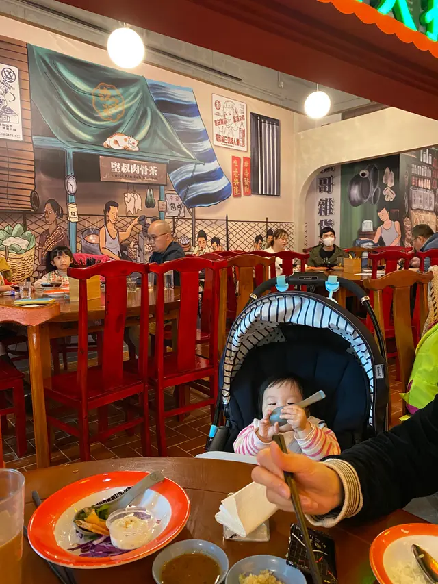 坐咗入去第一☝️張枱係12人枱搭枱但好大冷氣,驚小朋友凍親,就自己舉手🙋🏻‍♂️手換咗張4人枱可放BB車