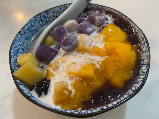 我點左一份芒果仙草三色圓紫米露,
