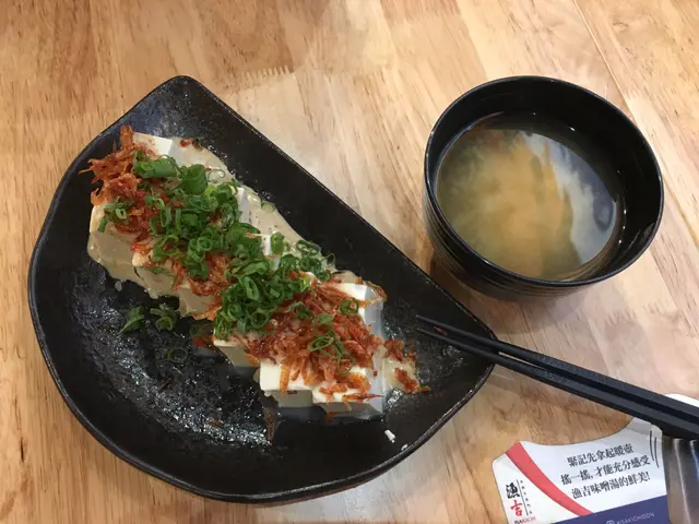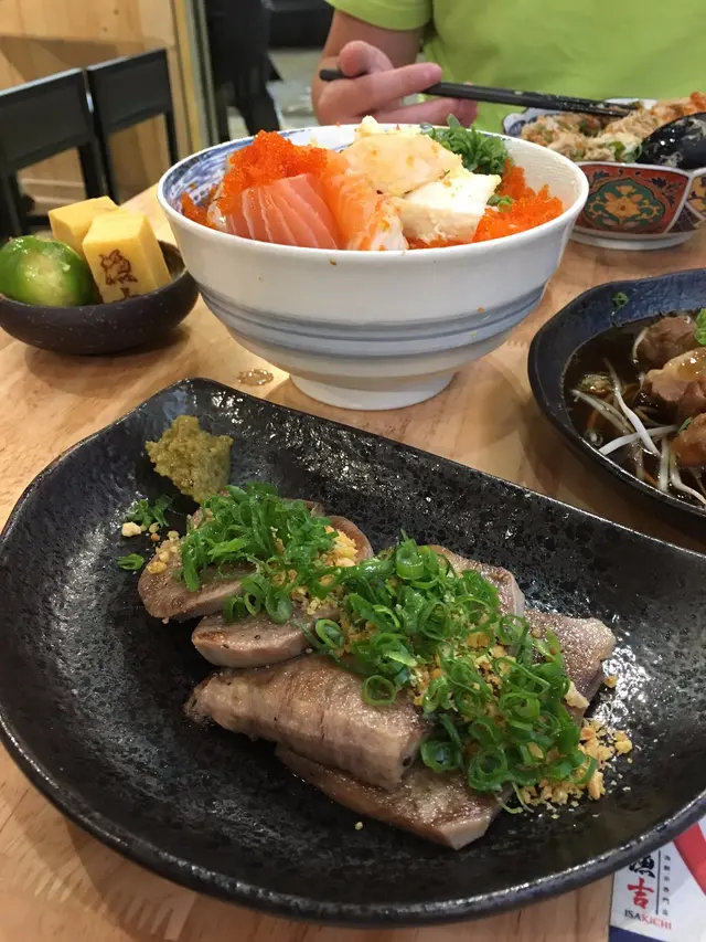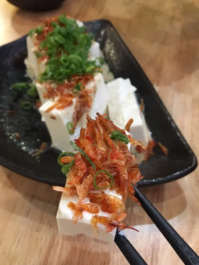 Menu上都有好多選擇,最後我哋3個人叫咗兩個丼以及幾款小食,先來了一個關西雪姬,冷豆腐除了沾上芝麻醬外,仲配上大量嘅櫻花蝦乾以及蔥花,廚師對於食材真係一D都唔手軟,櫻花蝦乾放滿整個冷豆腐面,配上櫻花蝦乾食除咗口感有層次外仲食到蝦乾嘅香味,芝麻醬同冷豆腐已經係個好正既配搭,加埋櫻花蝦口感更佳,不錯啊!👍🏻👍🏻👍🏻