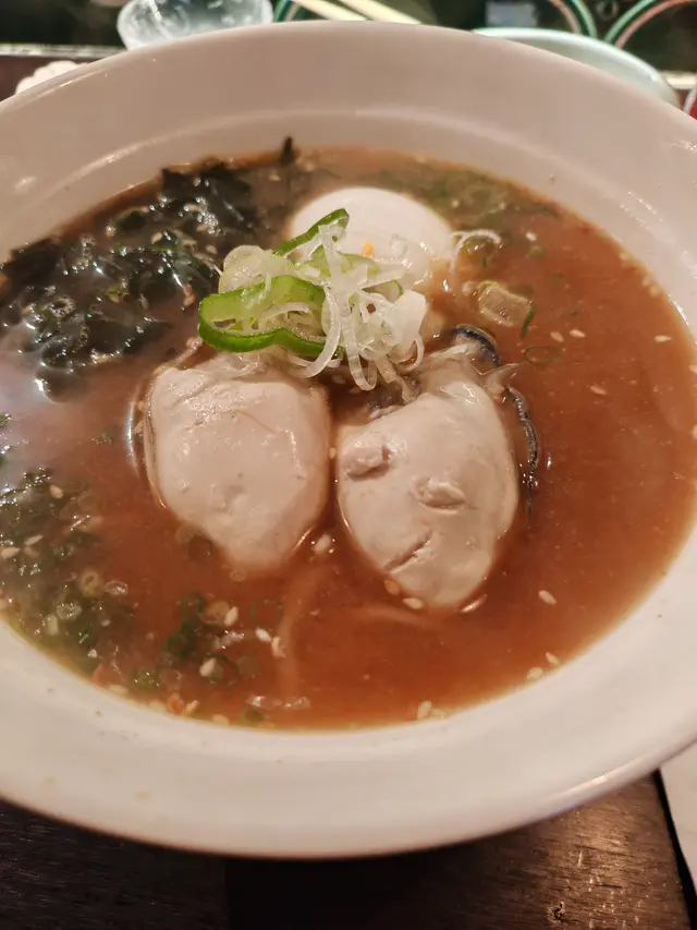 輪到主食~拉麵 ,我同一個同事食「 廣島生蠔拉麵」$68。 一碗有兩大粒生蠔,雖然數量唔算多,但每一粒都鮮甜飽滿,湯底清甜,兩粒生蠔嘅鮮味已經足夠cover成碗麵, 我認為老闆係計算過嘅,兩粒生蠔就啱啱好,三粒就會膩。 仲要提一提嗰隻流心蛋原來係日本蛋,老闆做得好好,蛋尾極濃。