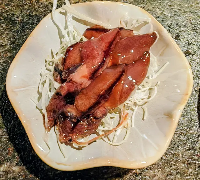 老闆跟住拎出一塊喜瑪拉雅山粉紅鹽板, 然後放上燒雞翼@$40 ,佢教我哋食之前用雞翼輕輕磨擦鹽板底部,以增加鹹味。老闆提點只須輕輕磨幾下,如果唔係就會太鹹。 呢隻日本直送嘅「手羽先」 外皮香脆,肉汁鎖得好好,我同同事都一致認為係全世界最好味嘅雞翼 (冇之一), 我甚至認為係「宇宙最強」!