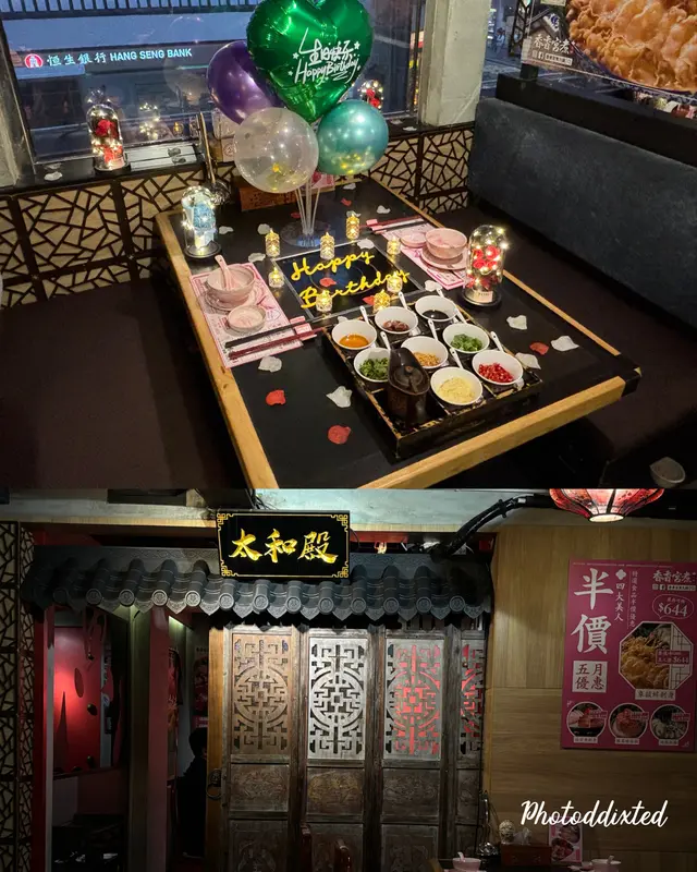 🤔環境就行豪華宮廷風 仲準備咗啲清朝服裝畀你影相📸隔離枱應該生日 我見有哂氣球做足功課 員工都頗細心 唔駛叫都識加湯