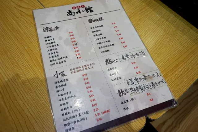 餐牌只是幾頁紙,但麻雀雖小,卻五贓俱全,包括了涼拌小食、小菜、點心、飯麵年糕、客飯餐、粉麵餐、飲品,定價都經濟實惠。
