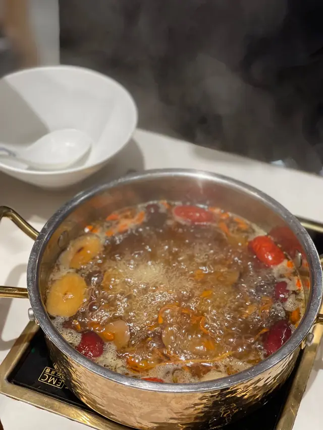 至於藥膳蟲草花桃膠雞湯都係一個非常有益健康嘅湯底。蟲草花具有補肺益氣、滋陰潤燥、提高免疫力等多種功效。而桃膠就係一種高膠原蛋白嘅食材,有助於美容、滋潤皮膚、保持關節健康等等。打邊爐嘅同時可以食到養生嘅食材,一舉兩得。
