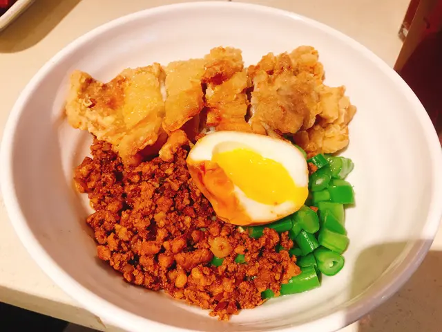 我就叫左呢個午市套餐之一既,鹽酥雞糖心滷蛋肉燥飯,份量正常,每項既比例都幾平均,佢既鹽酥雞就唔係雞粒,係雞扒黎既