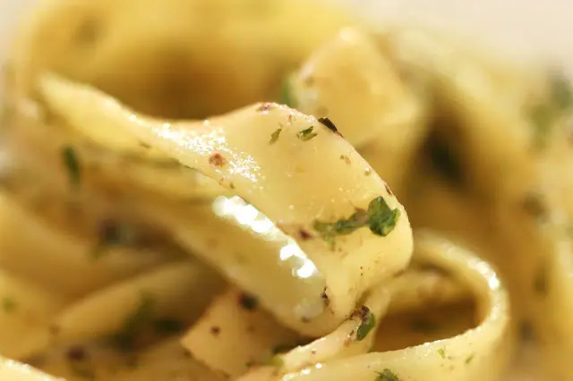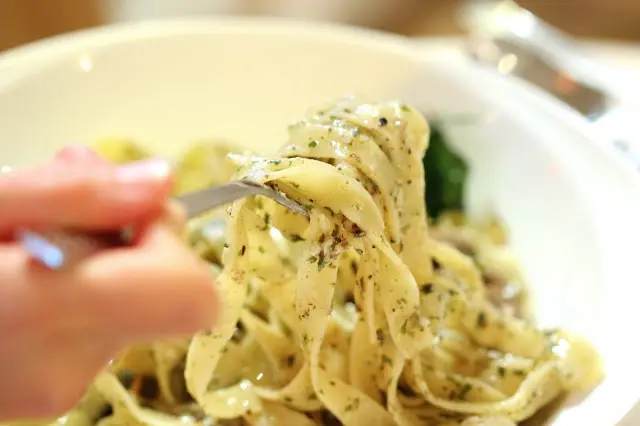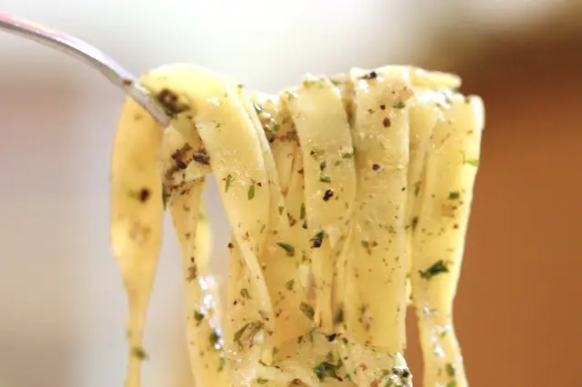 橄欖油香草裹滿全部的麵條,燈光打岀,令麵條閃閃爍爍的,整體很好,唯一是吃到底,橄欖油沉在底部,吃下略嫌有些油。