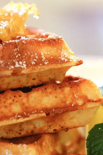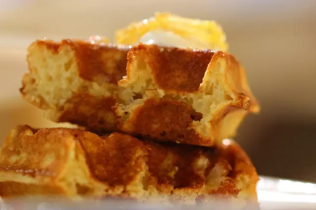 吃著,母親大人愛的窩夫也要奉桌了。