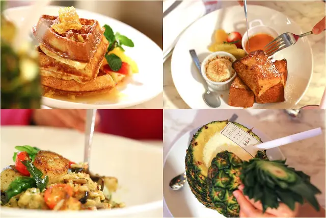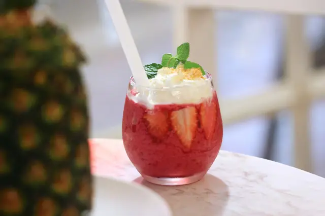 菠蘿根部被切除了,令人有較整潔的感覺。菠蘿面部開了個小洞,用來放粗飲管進去喝,也配備了芭菲匙羹,供我們吃內裏的果肉。