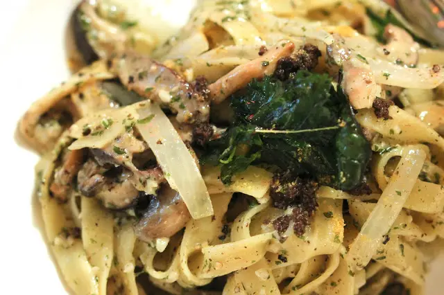 捲起闊條麵,白煙湧岀來,闊條麵的熱力食野菌及黑松露的香氣更時香濃。