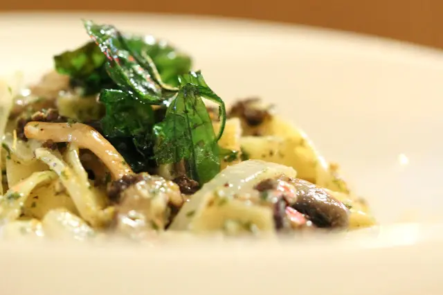 吃下,闊條麵也帶些硬度及韌性,麵條滑身不乾,野菌和黑松露的香味和嚐到的一樣突岀。
