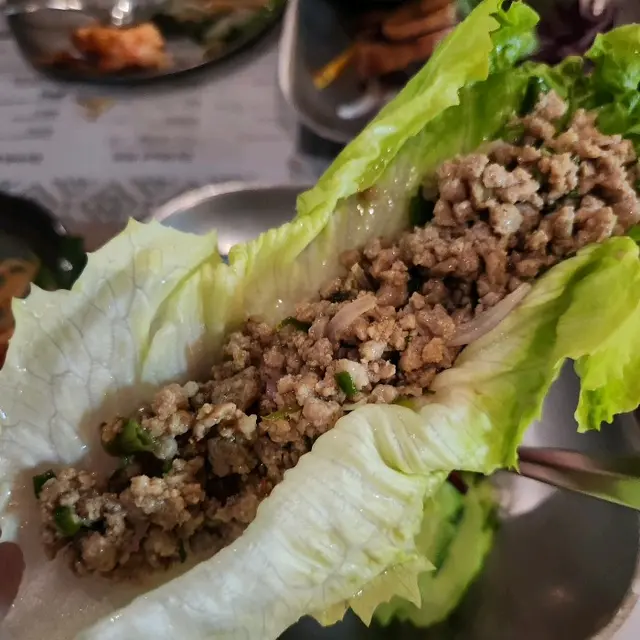 睇落好似豬似,口感都似豬,唔睇餐牌都唔知係鴨肉,但比一般豬肉更香,生菜好fresh,中和肉碎的味道