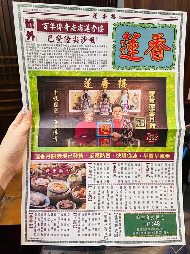 🪷蓮香樓🪷呢間傳統酒家,香港🇭🇰無人不識😋主打食點心同粵菜,今年5月喺尖沙咀開左分店啦🎉仲開足24小時架🕑推出左多款宵夜美食👍🏻放工夜左都有啖好食😋真係超推薦比大家🫶🏻適逢中秋佳節🏮蓮香樓仲推出左自家製雙黃蓮蓉月餅🥮優惠價$262盒,香港🇭🇰製造,保證真材實料👍🏻大家都快啲買返盒來送禮啦🎁,傳統得來又有特色,收到嘅人一定好開心架🫶🏻💕