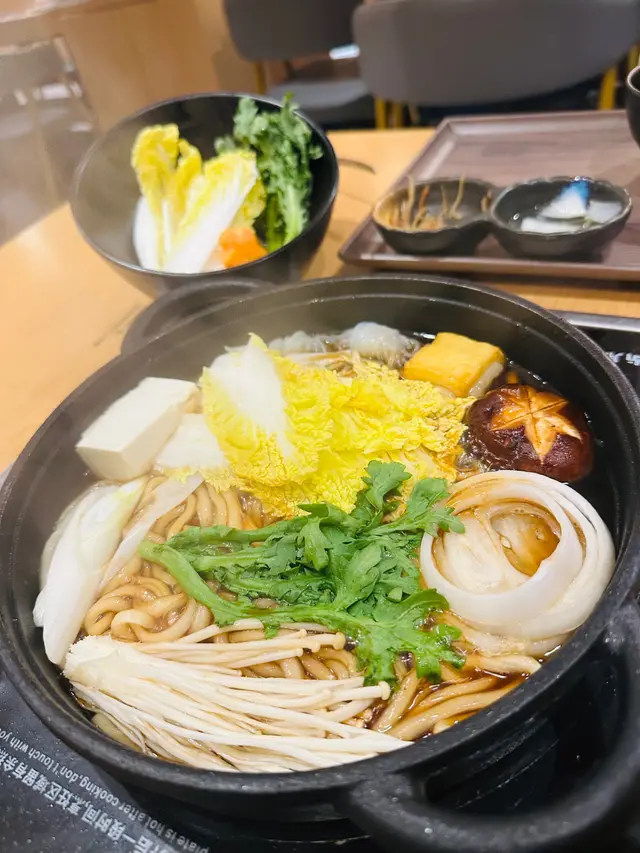 有得食有得玩的一個套餐🤣餐廳有提供教學指南,跟住啲步驟整:先燒肉,後壽喜燒火鍋👍🏻A4級別和牛好嫰,入口牛香滿溢又唔會太油,幸福感爆棚🥰之後用再烏冬、菇、菜、等加入鍋中,再加壽喜燒汁煮沸就食得😋😋