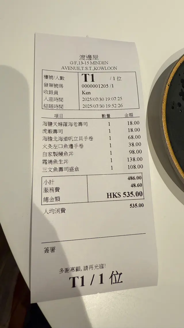 🍱尖沙咀日本直送新鮮魚生壽司店🍣 EllieChan03等级42025-07-3182 浏览 关注 渡邊屋雖然鋪頭細細但乾淨企理 師傅即握壽司有睇頭 🍣 海鹽天婦羅海老壽司 🍤 炸蝦唔油 簡單好食🦐 虎蝦壽司 🦐 蝦肉爽甜 18蚊件性價比唔錯👍 海膽北海道帆立貝手卷 🌊 海膽creamy 帆立貝鮮甜厚切 紫菜要快食免淋😋 火灸左口魚邊手卷 🔥 魚油炙燒後超甘香 入口即溶 醋飯微暖 38蚊抵食💫 自家製鰻魚丼 🍱 鰻魚厚肉 醬汁甜鹹平衡 飯量都幾多🍚 霜燒魚生丼 ❄️ 三文魚+左口魚+帶子 火炙魚油香突出 視覺效果滿分👀 三文魚壽司盛盒 🍣 三文魚夠新鮮 最鍾意魚腩位油脂香👌 整體食材對得住價錢 火灸左口魚邊有驚喜🙇 2以上食记乃用户个人意见 , 并不代表OpenRice之观点。赞好分享🍱尖沙咀日本直送新鮮魚生壽司店🍣 渡邊屋 https://s.openrice.com/QrLT0jhHT00检举 张贴 评分4味道4环境4服务4卫生4抵食用餐途径堂食