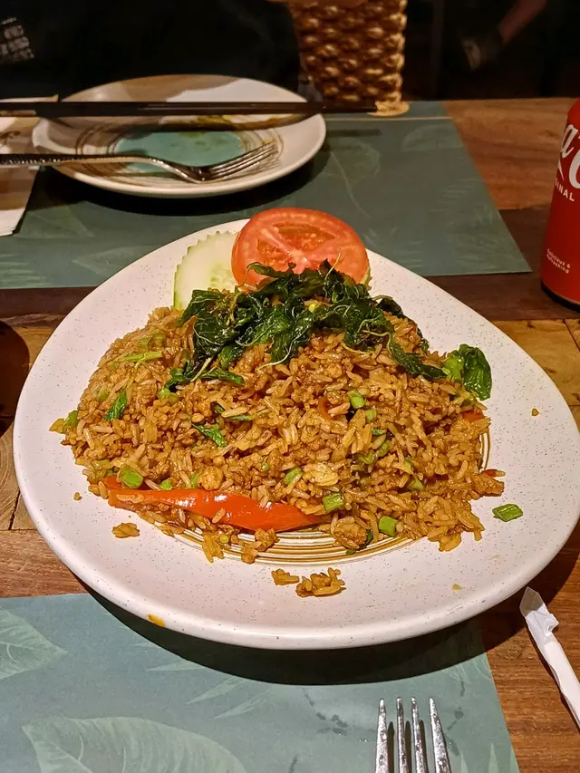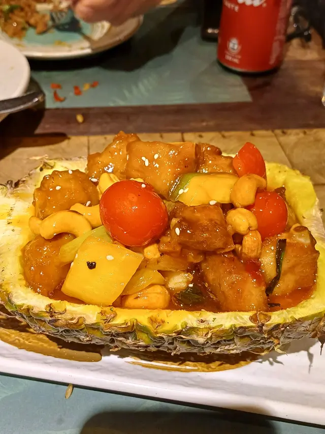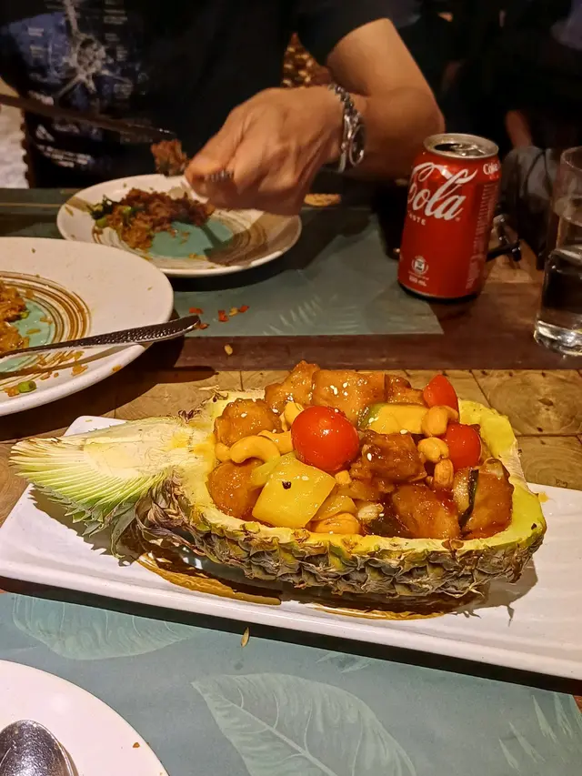尖沙咀的泰式風味 wingkeiso等级32024-08-29213 浏览 关注 尖沙咀的新泰東南亞餐廳,環境寬敞明亮,裝潢以泰國風情為主,讓人彷彿置身於熱帶雨林的邊緣。香草肉碎炒飯,每一粒米都包裹著濃鬱的香草香氣,豆角粒和香葉的加入,讓口感層次分明,青瓜和番茄的清爽,平衡了整體的油膩感。原個菠蘿排骨,味道帶香甜,內裡肉質鮮嫩多汁,腰果的香脆與車釐茄的酸甜,加上菠蘿的果香,整個菜味道酸甜惹味。馬拉盞炒通菜,通菜的爽脆與馬拉盞的香辣完美融合,簡單的食材卻帶來了複雜的口感體驗,令人回味。一杯冰涼的可口可樂,清甜中帶著微微的刺激,讓整頓餐更加完美。以上食记乃用户个人意见 , 并不代表OpenRice之观点。1分享尖沙咀的泰式風味 新泰東南亞餐廳 https://s.openrice.com/QrLT0epfM00检举 张贴 评分4味道5环境4服务4卫生4抵食用餐途径堂食