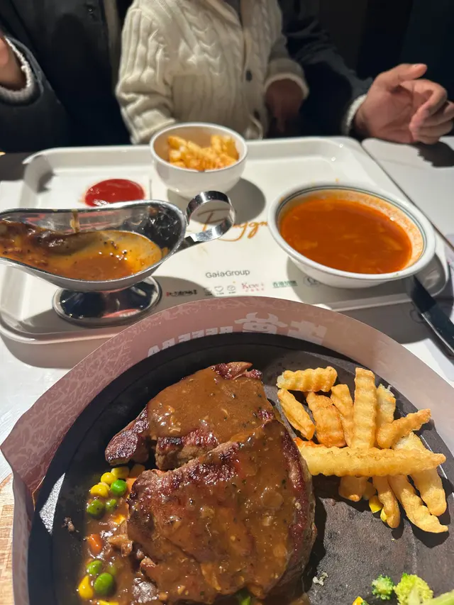 上次喺尖沙咀K11行到肚餓,去咗佢哋嘅food court食嘢😋見到呢間好多人排隊就試吓佢哋嘅牛扒性價比好高!份量又夠!成個場都係食緊呢個牛扒🥩鐵板嘅字字聲佈滿咗成個food court😋不過可能因為太多人食嘅關係牛扒過熟😖等嘅時間都好長,當日只有一個職員製作真係好忙~都可以理解嘅希望下次食好嘅質素會去返平時咁!但係講佢個肉質係唔差嘅!