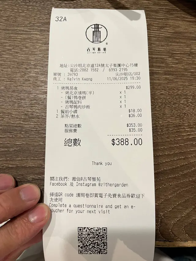 結帳只需$388,性價比高另外餐廳的茗茶很好喝🍵