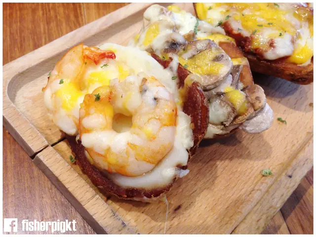 每個多士的配料也不同,有牛肉醬、磨菇及蝦