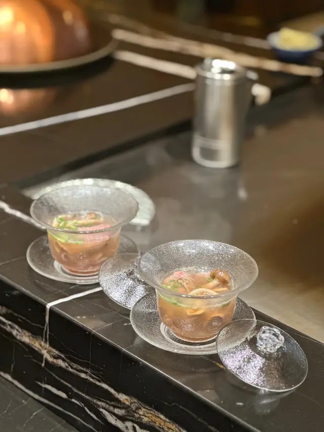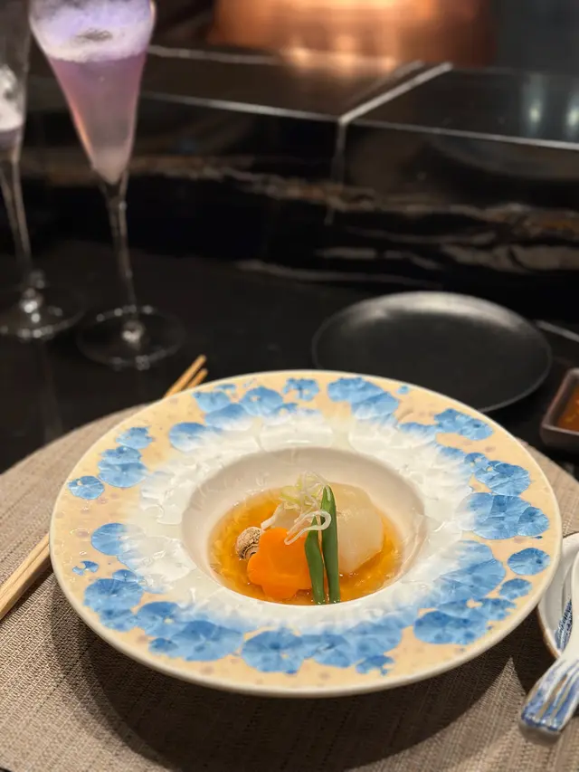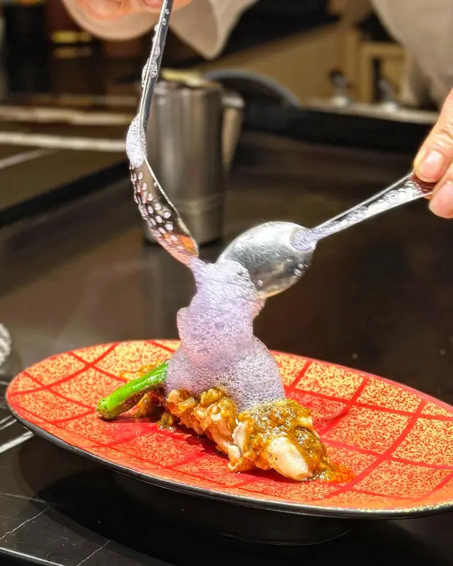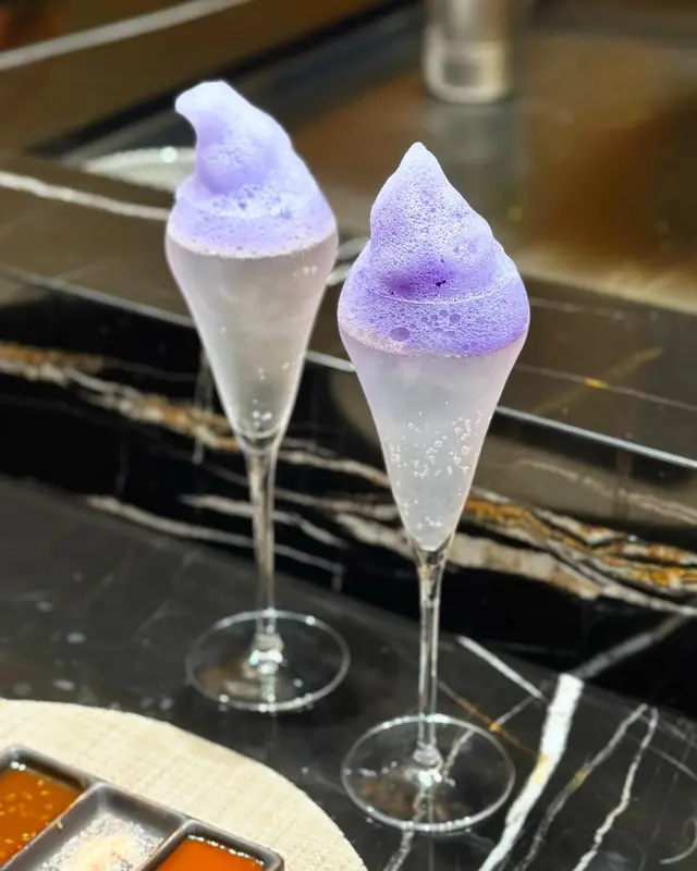 每次食鐵板燒都好期待龍蝦!🥰龍蝦厚肉爽彈,再淋上用蟹膏製成嘅醬汁,味道濃郁!廚師仲會蝶豆花打成紫色泡泡放喺面頭裝飾,好fancy’😋呢道菜會仲附上一杯cocktail - 鹹檸檬gin tonic,唔飲酒嘅話可以轉mocktail👍