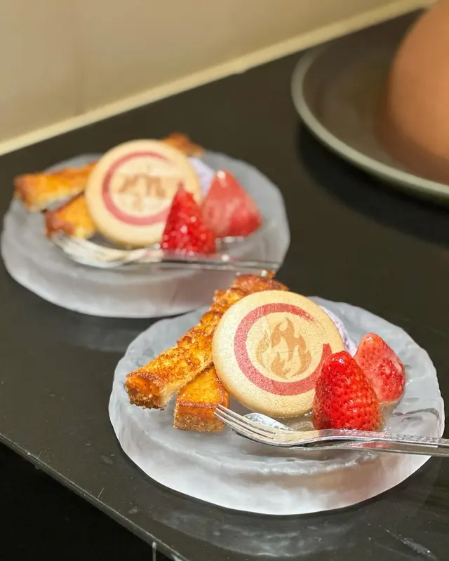 好有心思嘅甜品,有香脆嘅焦糖多士同自家製藍莓雪糕,伴碟仲有用火燒過嘅士多啤梨😋為整個晚餐劃上完美句號🥰