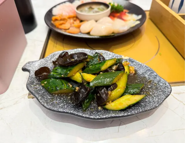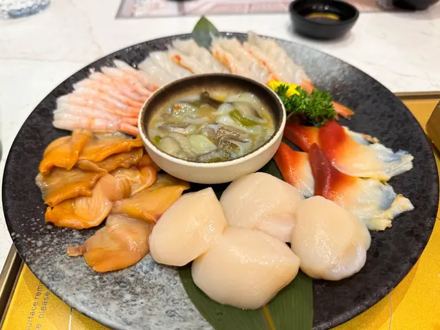 睇左menu後就揀左椰子雞火鍋,一開頭會送一個刺身拼盤,雖然無得追加,但份量兩個人食黎講已非常足夠,分別有帶子、赤貝、北寄貝、刺身蝦,帶子尤其出色,係珍寶size。