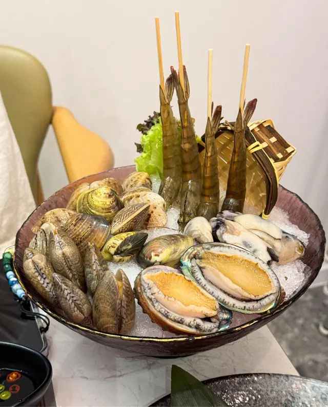 跟住到海鮮拼盤,例牌嘅都係有野生鮑魚、白蜆、花甲、生蠔同埋蝦,依個驚喜在所有食材都非常新鮮,食落爽口彈牙,配搭椰子雞煲嘅鮮甜湯底更加係恰到好處。