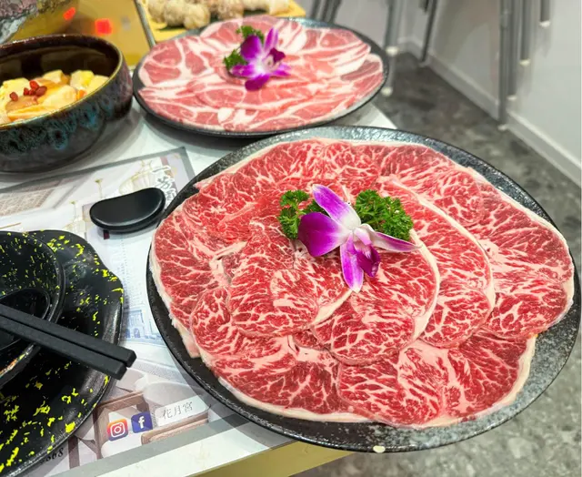 然後到主角椰子雞,食落嫩滑唔柴口,只需簡單淥熟,豉油都唔需要點,雞肉味+椰子清甜味已十分突出,值得一讚。至於其他食材,美國頂級牛板腱+美國黑豚豬屬中上水平,口感嫩滑有肉味,雪花比例適中~