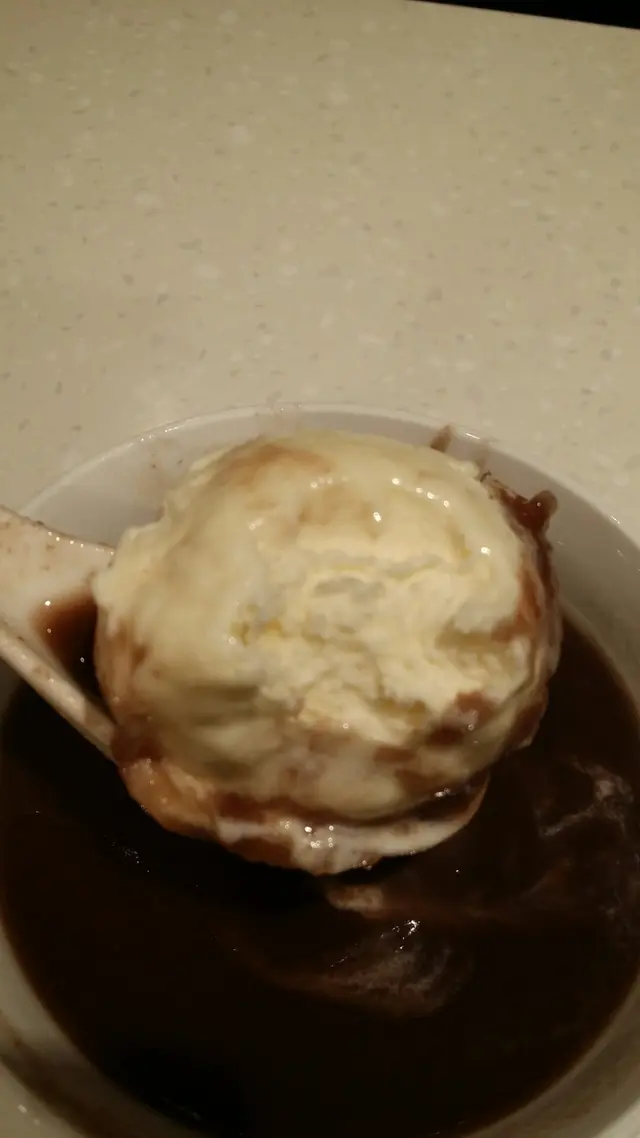 反而面頭的「雲呢拿」雪糕球,反而比想像中來大和完整。我在點菜之前,已經有詢問過店員有關雪糕球的口味,確定有不含「咖啡因」成份的雪糕後,我才確定選擇享「雪糕紅豆沙」。