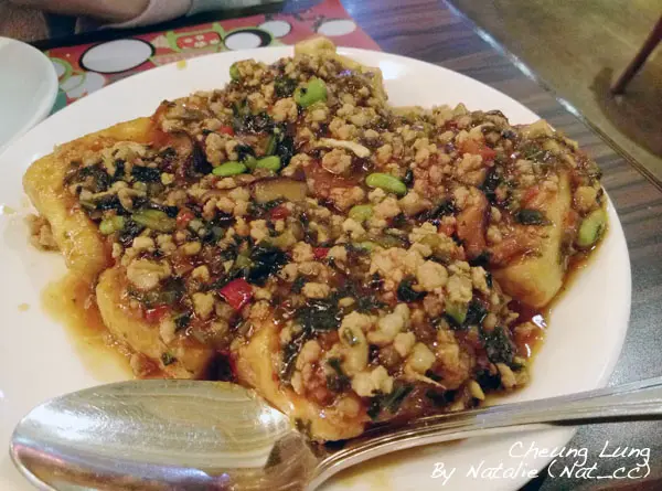 平淡無味既豆腐先煎香再混合野味雪菜冬菇肉碎混上毛豆一併煮