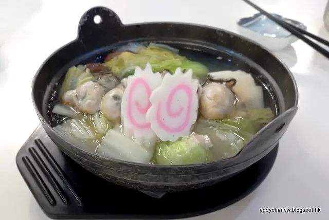 見餐牌上的廣島蠔肉鍋幾吸引, 也點了一鍋來試試, 鍋內有廣島蠔, 蠔肉索了湯汁, 鮮味十足, 再配上新鮮蔬菜、豆腐等配料, 也是好吃。