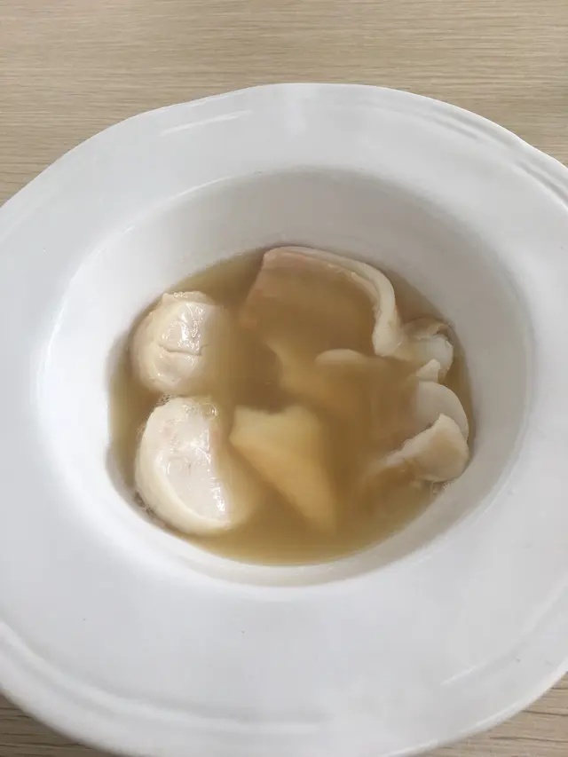 大大兩顆甘貝還有一種我不知道名字的海鮮⋯(原諒我的無知),一看就知是老闆精心製作,味道鮮美。老闆說完全是用魚熬出的湯底,鮮甜完全來自魚本身,是沒有加鹽或味精的!