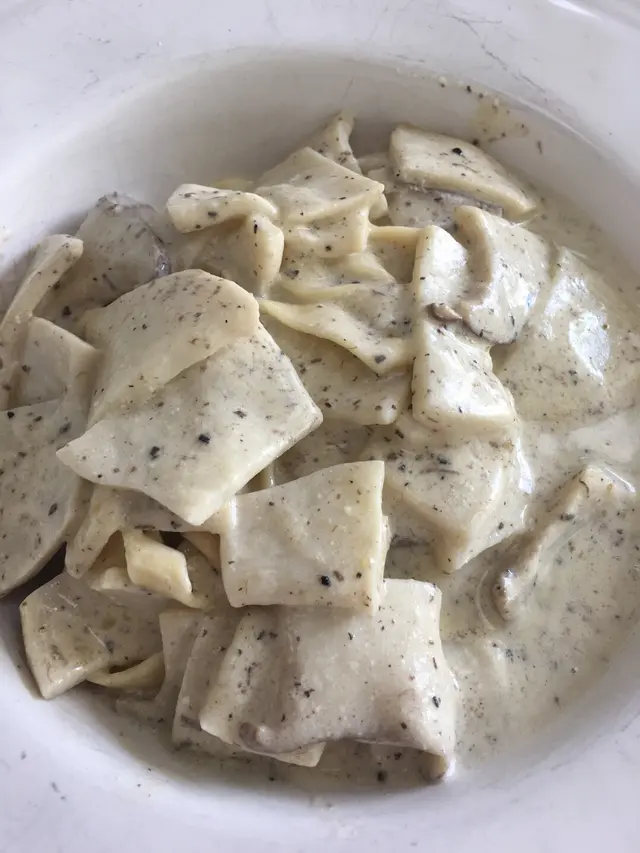 因爲被廉價黑松露的怪味嚇過,等待時很緊張,結果出乎意料地美味!滿滿的什菌鋪在彈性十足的麵條上,麵條被濃濃的黑松露忌廉醬汁包裹,超creamy~超香濃~