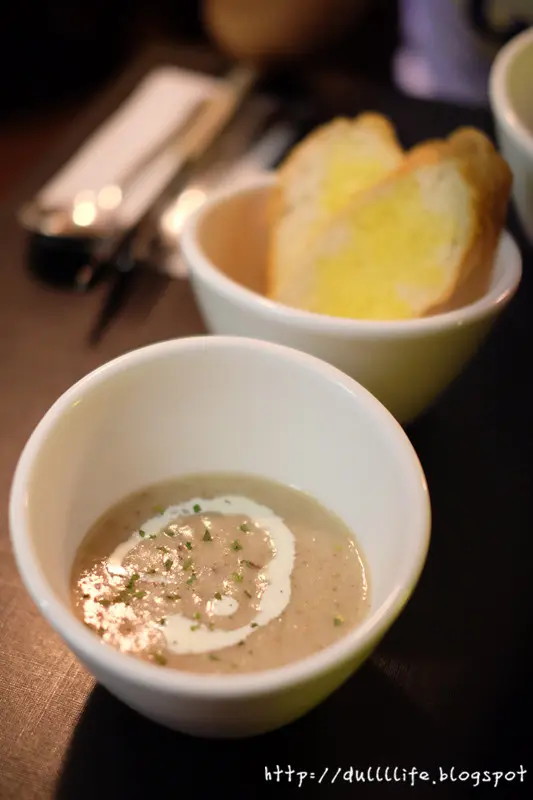 磨菇忌廉湯配蒜蓉包