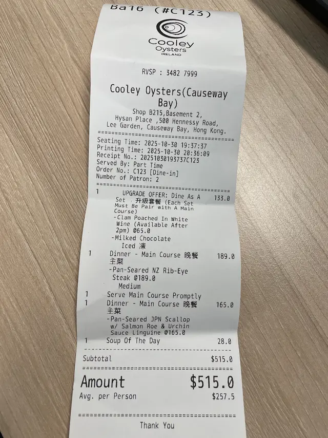 希慎B2層主打愛爾蘭生蠔的西餐,價錢親民又可以一嚐生蠔鮮味。
