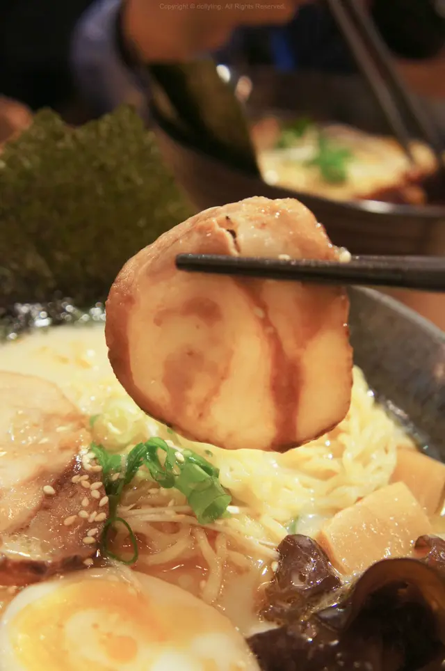 配料方面~叉燒則是薄身的那款。肉質屬於肥美,幸好吃落也不算太油膩