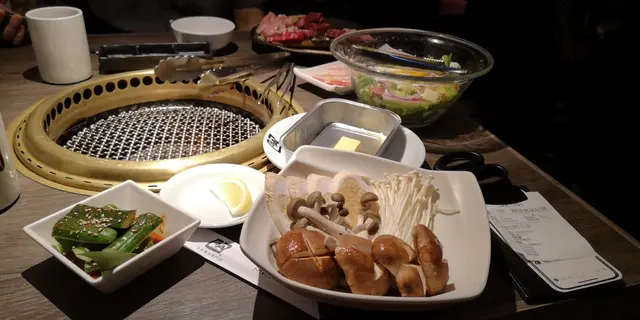 食物質素一般,大部分燒肉味道 ok,唯柱狀牛舌靱到要回吐,廣島蠔略腥。沙律好味,芝士粒,煙肉粒有香味有口感。我見識淺,把金菇走錫紙盒上網直燒,但一樣爽脆鮮甜。最滿意是二人餐包4杯飲品,有不少選擇,最後叫了兩杯啤酒,一杯威士忌梳打,一杯荔枝梳打(含酒),所有飲品無論甜度及温度都啱口味,平燒肉的乾燥,餐後有幾粒強力薄荷糖清口氣。我與朋友食量不大,有兩大杯飲品撐肚啱啱好,但一般相信要追加才夠飽。整體用餐經驗舒適,比涮涮燈影牛肉簿片放題有更大幸福感。