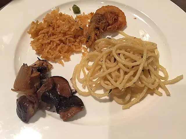 熱盤陣容有巴東牛肉,咖哩炒蟹,黃金蝦等重口味,輕巧一點有時菜,巴馬臣芝士意粉,馬拉盞蟹肉炒飯,恰如其份。