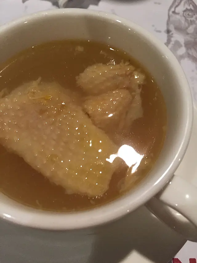 西蘭花忌廉湯濃而不膩,每一口都是西蘭花的香甜,中湯為沙參玉竹雞湯,清香撲鼻,味道清鮮,但真的清了一點,要耍些鹽花來吊味。
