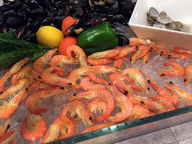 冷盤上的選擇,海鮮不出長腳蟹,海蝦,翡翠螺,蜆。個人比較喜歡鮮甜的海蝦,長腳蟹質素亦不俗。