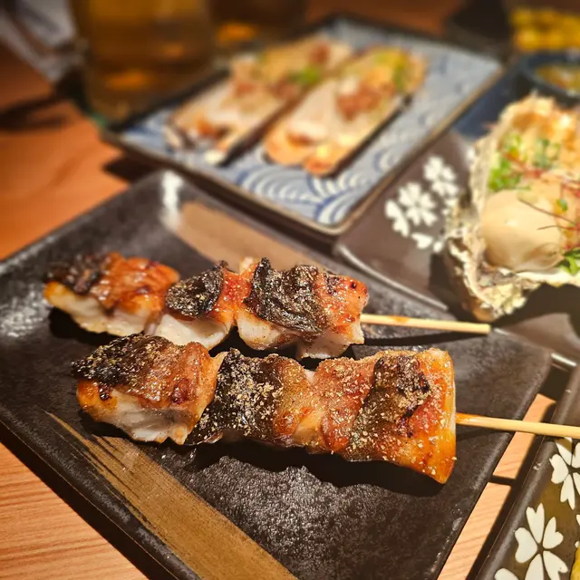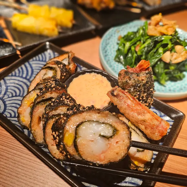 外面係脂香豐盈嘅豚肉片包裹住鵪鶉蛋,再配上紫菜絲,口感豐富。
