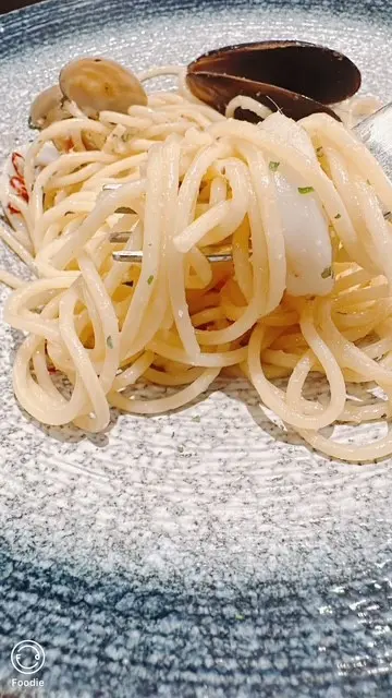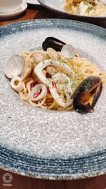 一人一個主菜,想要刺激吓味蕾,就要叫呢客香辣海鮮意粉。海鮮包括青口,蜆及魷魚圈。