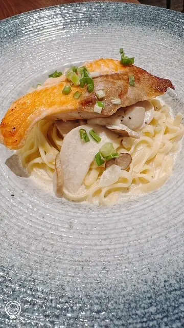 加$28可選香煎鮭魚配味噌忌廉鮮製意粉,味噌配忌廉,帶點和洋風味。