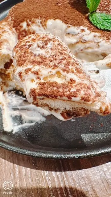 浸滿咖啡酒嘅手指餅,入口仍外脆內軟,面層再灑上朱古力粉,又有香甜芝士忌廉醬,甜度岩岩好。