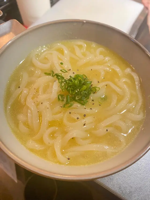 結尾雞湯烏冬一上檯就聞到濃郁雞油香,不過配烏冬就略嫌淡口了一點,反而直接喝湯就覺得調味剛好。