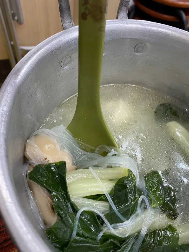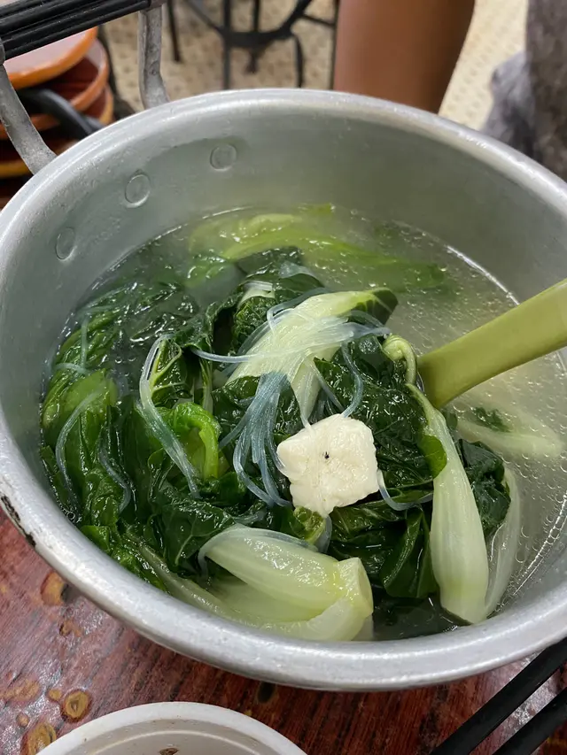 上枱真係煲湯咁大個煲,入邊有白菜、生菜、粉絲同埋少量豆腐、冬菇,個份量真係好誇張,同埋個湯底清清地都係幾好飲既!