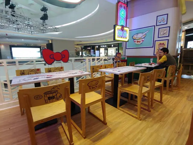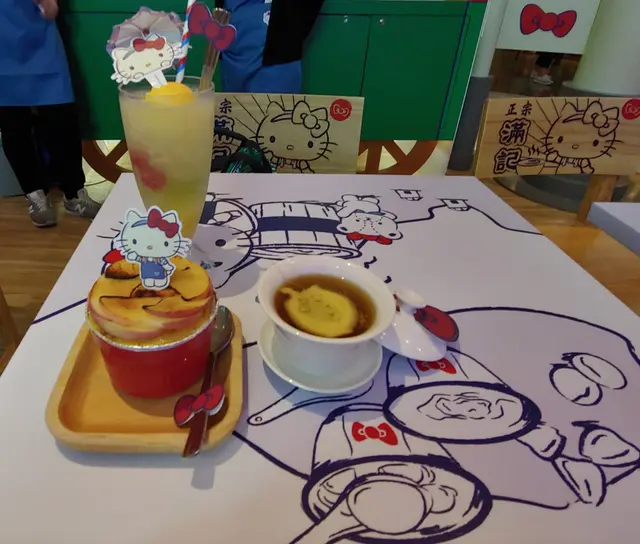 連餐桌及坐椅都有超吸晴的KT圖案。