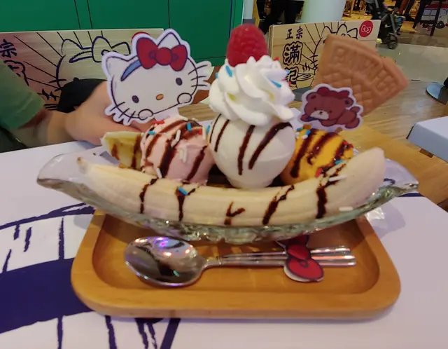 白牛其實是雪碧加芒果雪糕,香蕉船呢都是三球雪糕加朱古力條和香蕉。這兩款食物基本上沒有太大可能出錯,只能說選用的雪糕問題,令食味有落差。